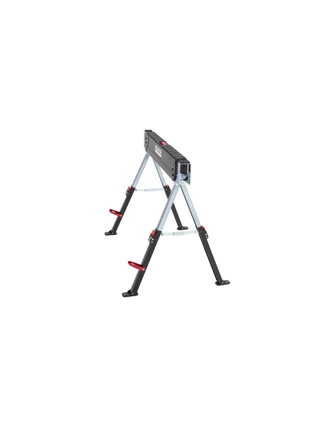 Bukken er konstrueret med en solid stålramme, og dens ben er både justerbare og drejelige. Denne designfunktion sikrer, at bukken forbliver ekstra stabil, selv på ujævne overflader. Desuden gør dens sammenfoldelige natur den nem at opbevare og transportere, hvilket er praktisk, når den ikke er i brug.