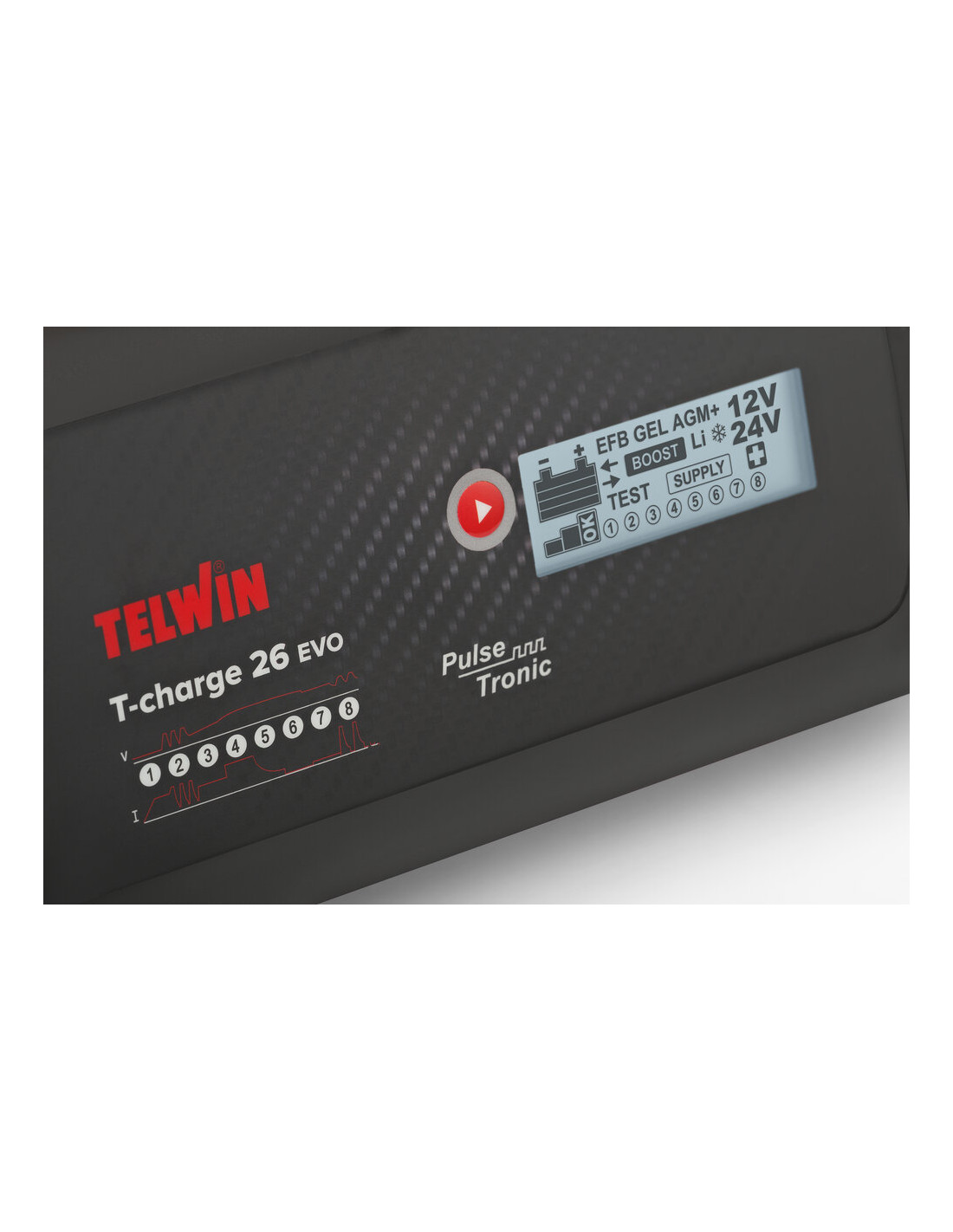 T-CHARGE 26 EVO er din pålidelige partner til at opretholde optimale batteriydelser. Simplificeret brug og avancerede funktioner gør den ideel til enhver, der kræver en effektiv batterioplader. Invester i T-CHARGE 26 EVO for at sikre dine køretøjers batterier leverer pålidelig strøm, når det er nødvendigt.