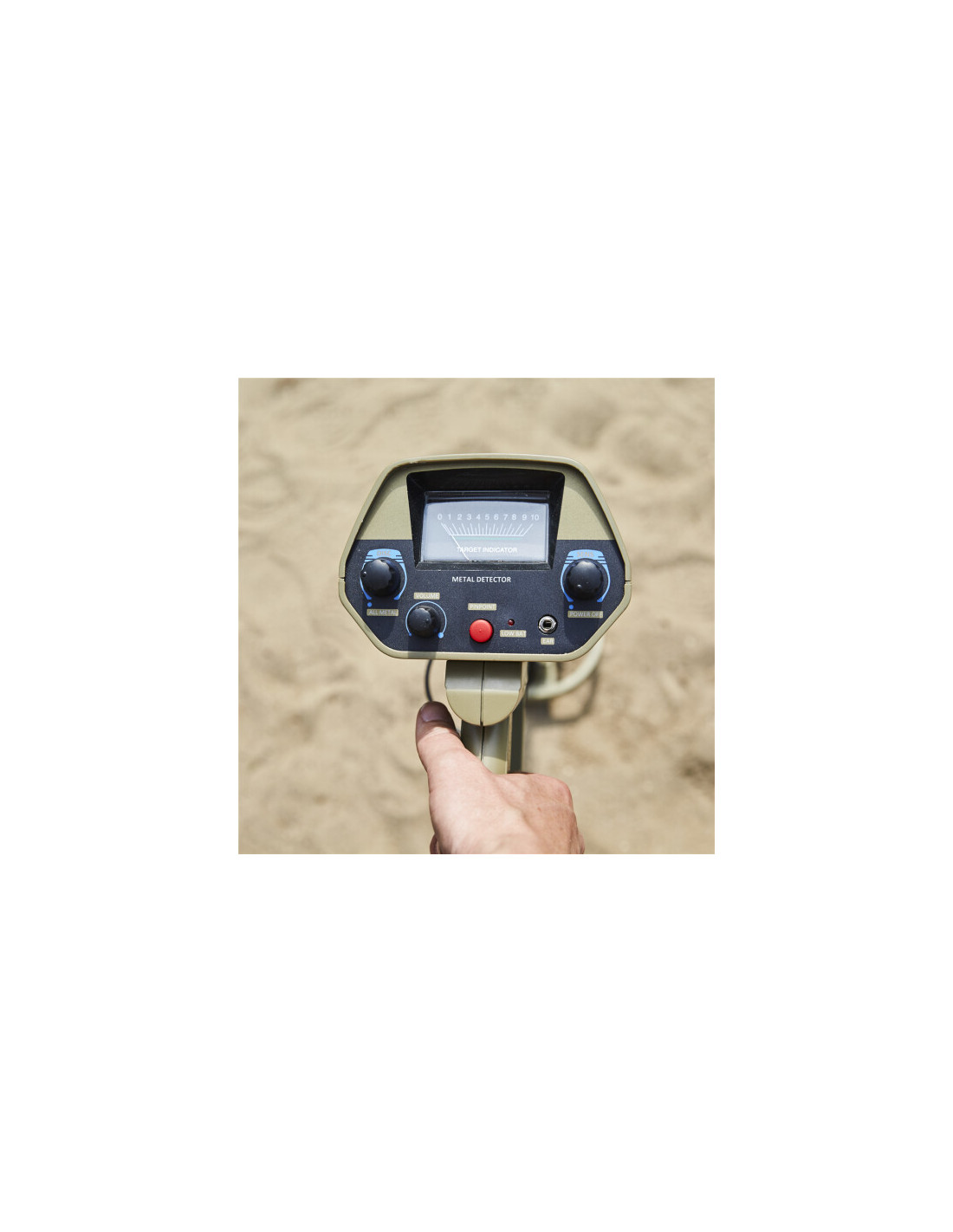 Målskiveindikator: Viseren drejer mod højre ved registrering af metal.