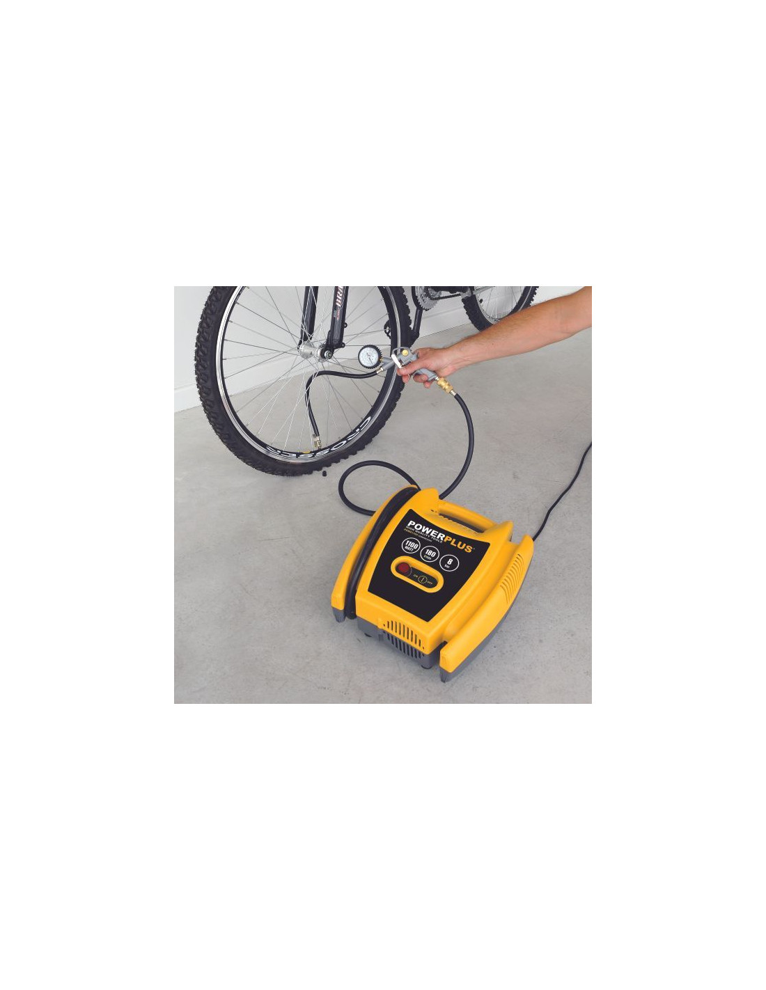 Den har en luftdebitering på 180 l / min og producerer et maksimalt tryk på 8 bar, ideelt til at pumpe dæk, bolde, luftmadrasser til at fjerne støv, til sømpistoler.