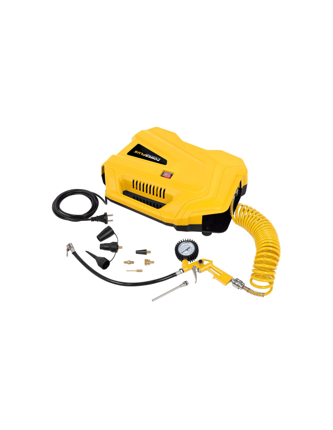 Denne oliefrie bærbare Powerplus kompressor er ideel til oppustning af bil- eller cykeldæk, luftmadrasser og basketballs eller til at fjerne støv. Takket være den høje luft debitering op til 180 liter / min. og med et konstant tryk på 8 bar. Kompressoren er kompakt og let og derfor let at transportere og opbevare. Da kompressoren er oliefri, kræver den ikke nogen smøring eller vedligeholdelse og er meget let at bruge. Sikkerhedsventilen undgår overbelastning.