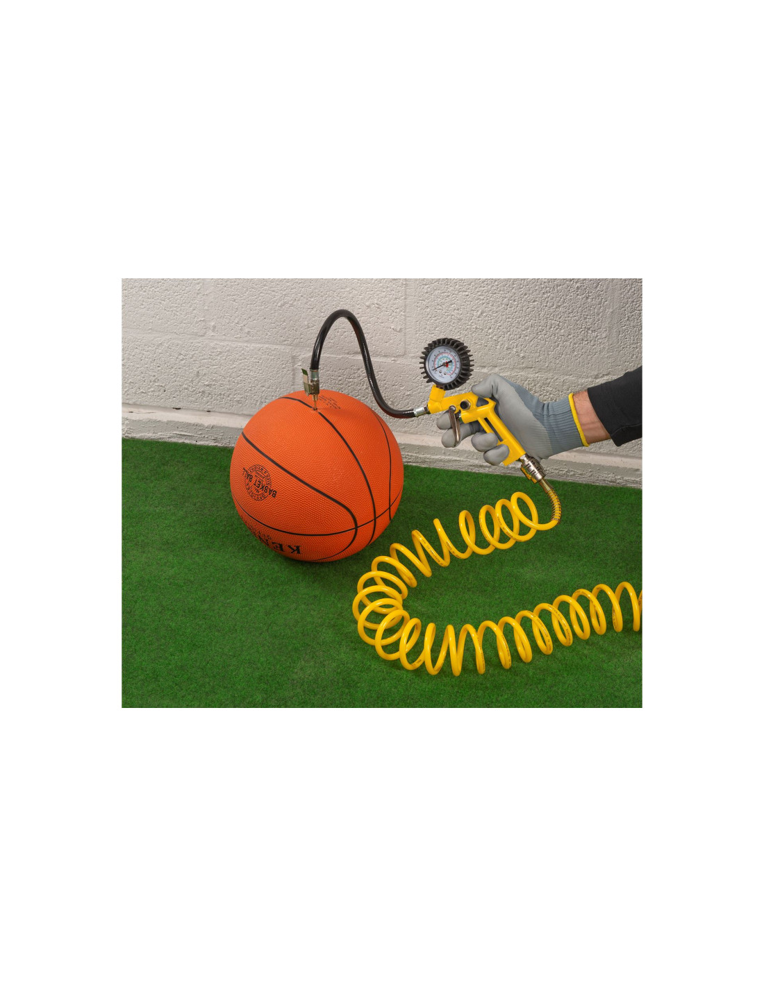 POWX1706 leveres med et opbevaring til dit forskellige tilbehør. Foruden en pumpepistol med manometer består den af ni forskellige adaptere og en 3 meter spiralslange med hurtig kobling.