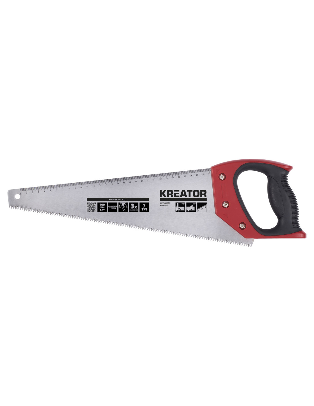 Denne håndsav har 7 TPI (tænder pr. tomme), hvilket gør den ideel til detaljeret savning. Den fleksible 400 mm stålklinge er udstyret med hærdede tænder, der er slebet i 3 forskellige vinkler. En garanti for skarpe, rene snit hver gang.