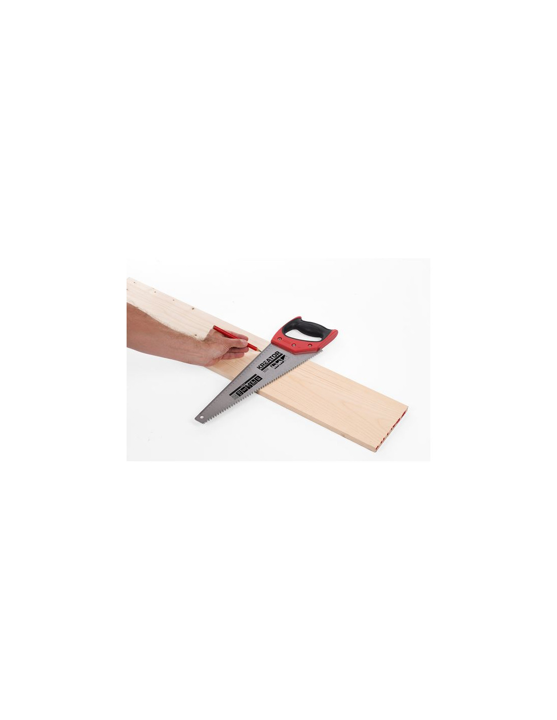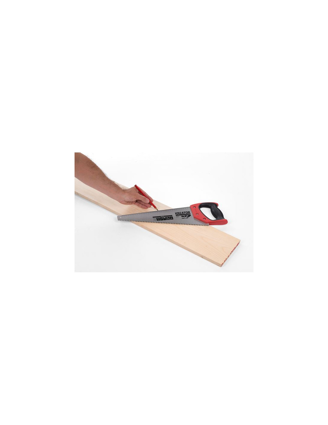 Denne håndsavs design inkluderer vinkelstyr for 45° og 90° samt en skalainddeling i mm. Afslutningsvis er denne håndsav med blødt greb et meget nyttigt tømrerværktøj.