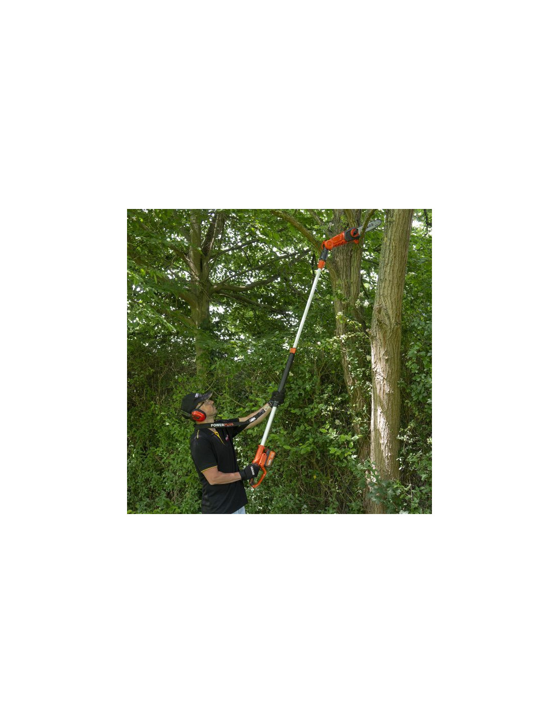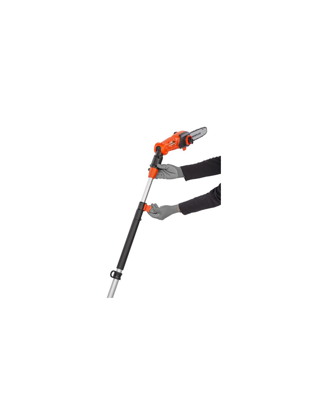 Denne teleskop kædesav har et teleskopskaft, der kan justeres fra 175 til 240 cm, så du kan nå de fleste grene i trætoppe uden besvær. Det justerbare hoved gør det muligt at vinkle sværdet præcist, hvilket sikrer optimal kontrol og effektivitet, når du arbejder i forskellige vinkler.