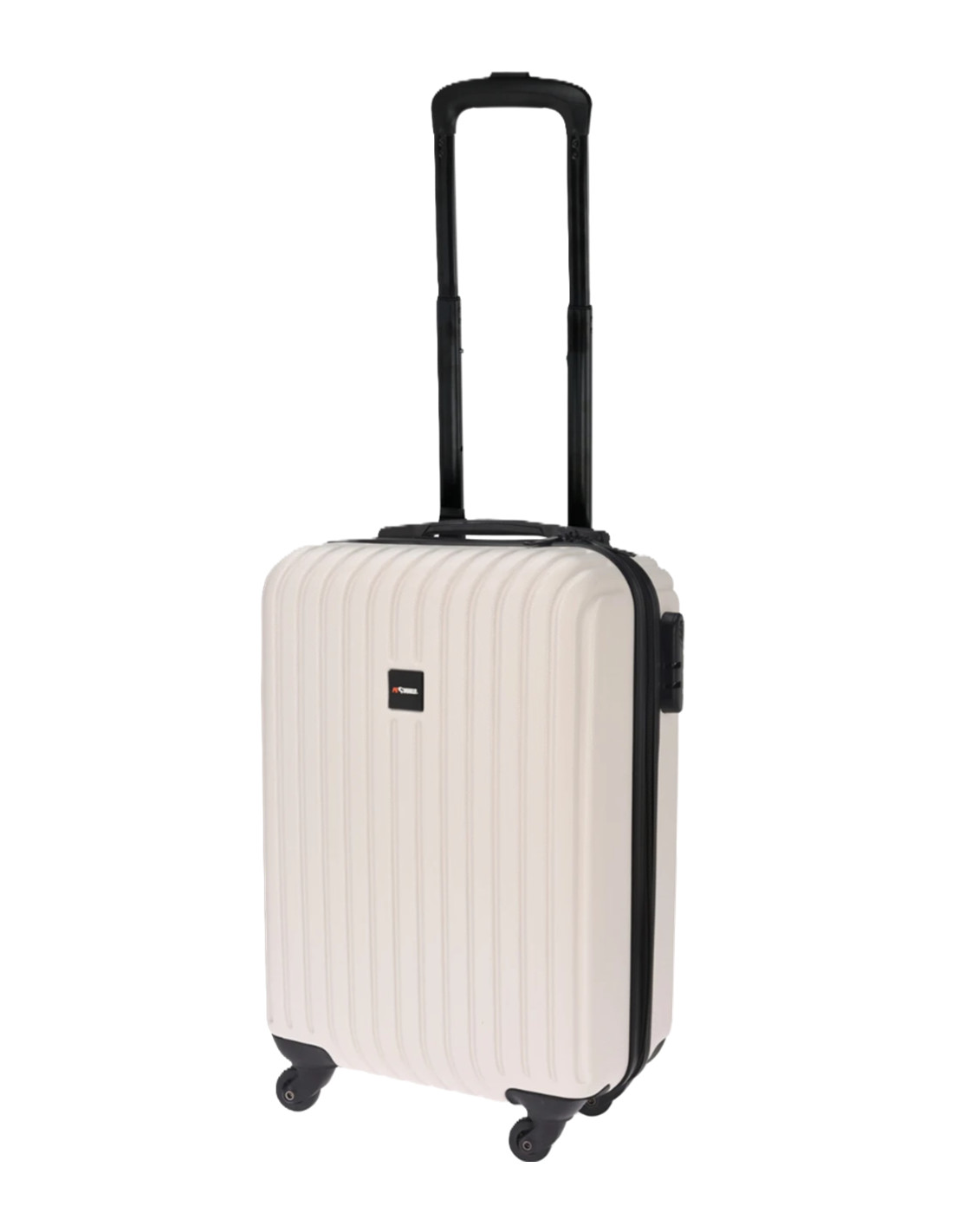 Denne kuffert er perfekt som håndbagage til rejsen og har en kombinationslås på siden. Indvendigt i kufferten finder du en U-formet lynlås. Kufferten er fremstillet af holdbart ABS & PC plast i et ribbet design, der hjælper med at beskytte mod stød og skader. Dimensionerne er 33 x 21 x 53 cm.
