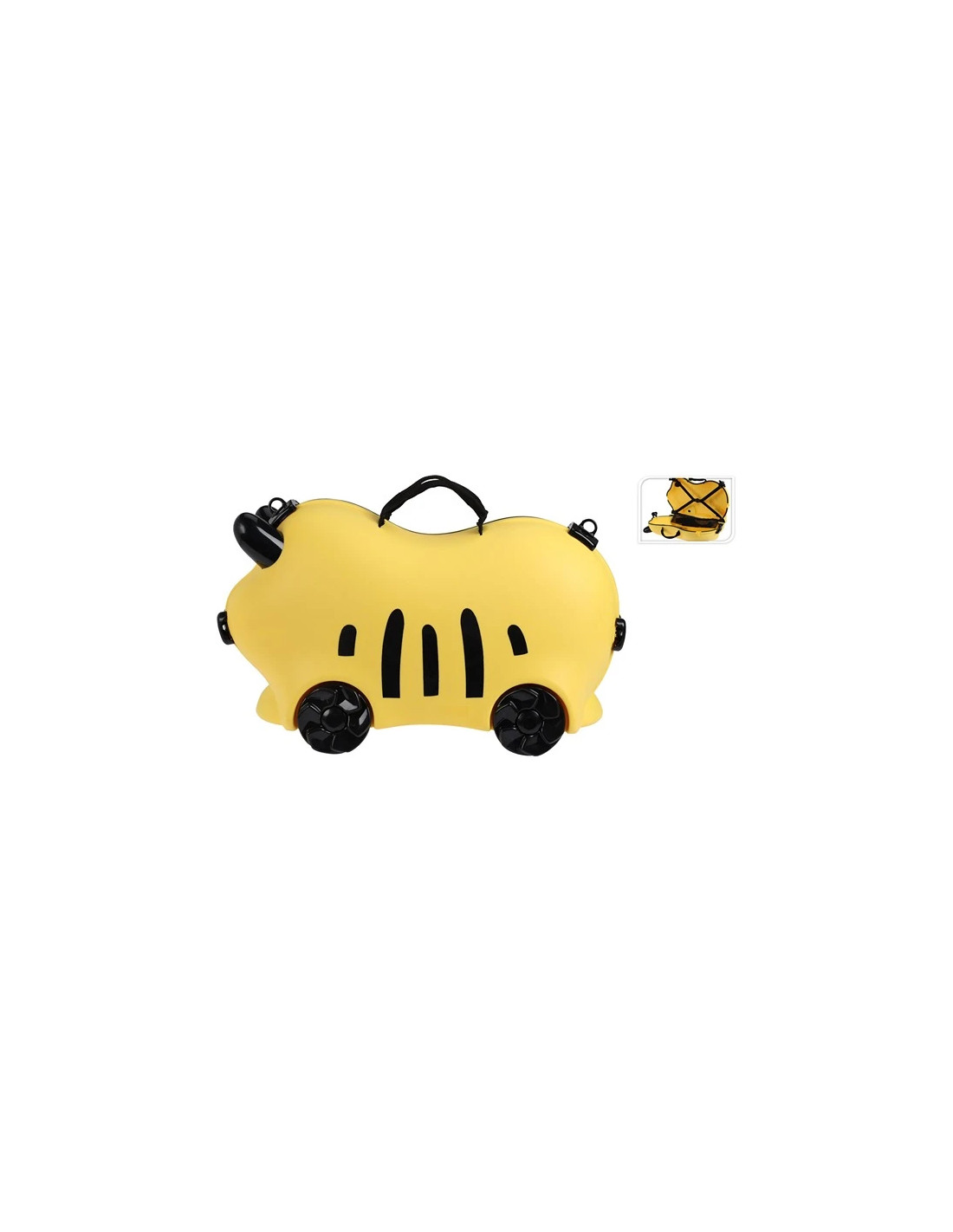 Med denne gule børnekuffert ride-on med fire hjul får dit barn ikke kun en sjov og funktionel kuffert, men også et fantastisk rejsetilbehør, der gør rejsen endnu mere spændende og underholdende.
