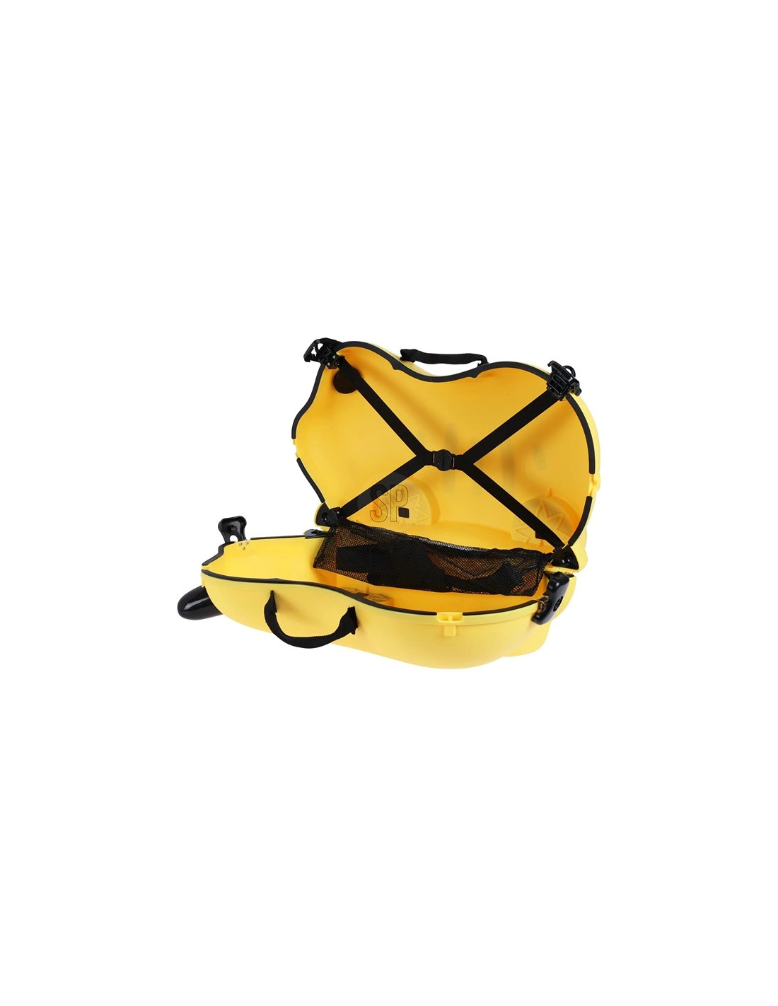 Indvendigt har kufferten en rummelig opbevaringsplads, hvor dit barn kan opbevare sine yndlingslegetøj, bøger og små tøjstykker, hvilket gør den praktisk til både korte og længere ture. Den lyse, gule farve sikrer også, at kufferten skiller sig ud på bagagebåndet og er let genkendelig.