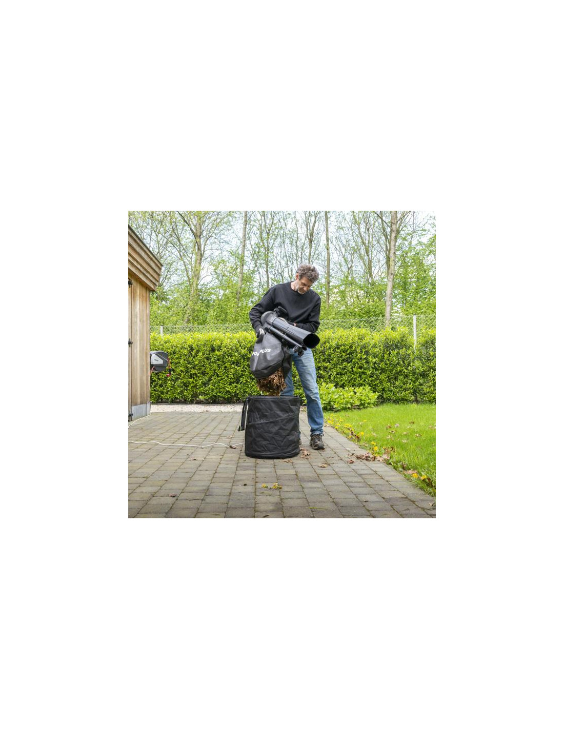 2-i-1 Funktion: Blæs og sug haveaffald op i den store opsamlingspose, og makuler det til mindre stykker.