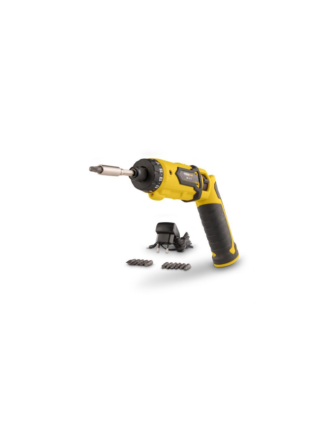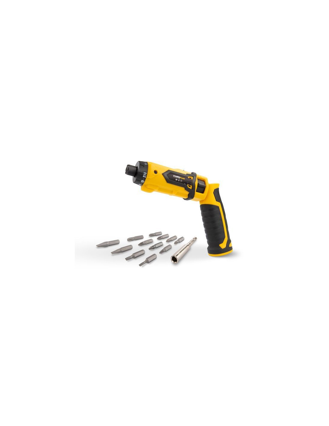 Medfølgende i pakken er en oplader, en magnetisk bitholder og 12 bits, så du har alt, hvad du behøver, lige ved hånden. Hold styr på batteriets ladestatus med den praktiske statusindikator. Oplev bekvemmeligheden ved alsidighed og pålidelighed med Powerplus POWX00410 - din nøgle til effektiv skrue- og borearbejde. Køb nu for en problemfri og kraftfuld skruetrækkeroplevelse.