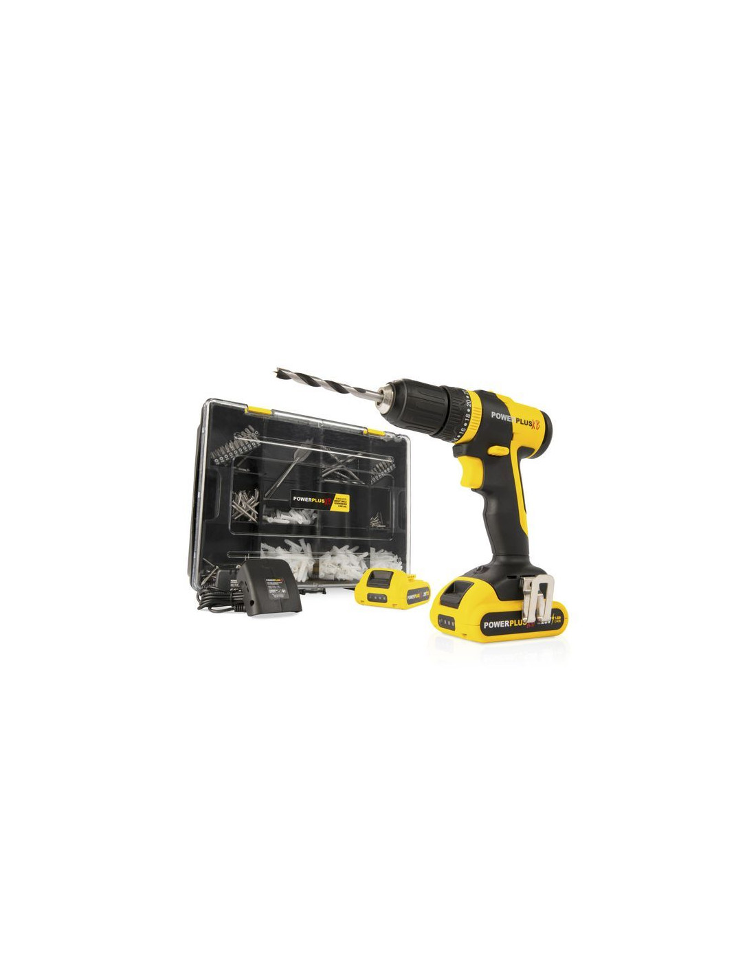 Få mere ud af din arbejdsdag med dette slagboreværktøj på 20 volt fra Powerplus, komplet med 2 kulløse batterier og en praktisk værktøjskasse indeholdende hele 362 dele tilbehør.