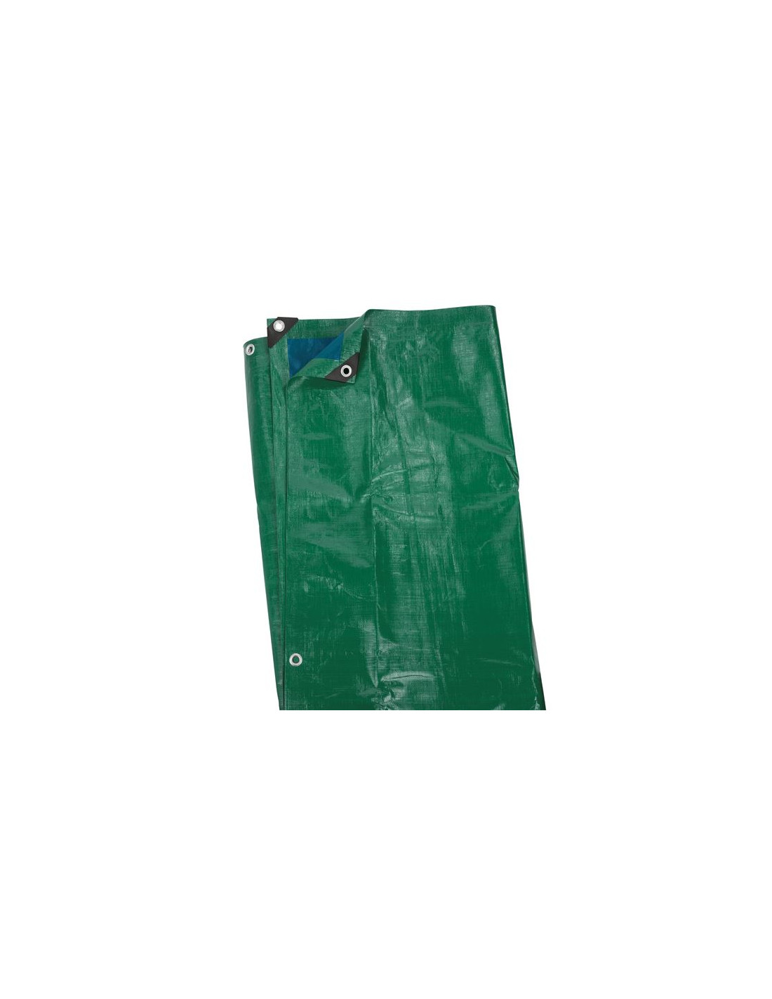 Dette er en 2 x 4 m dobbeltsidet grøn og blå presenning med en tykkelse på 120 gr/m².