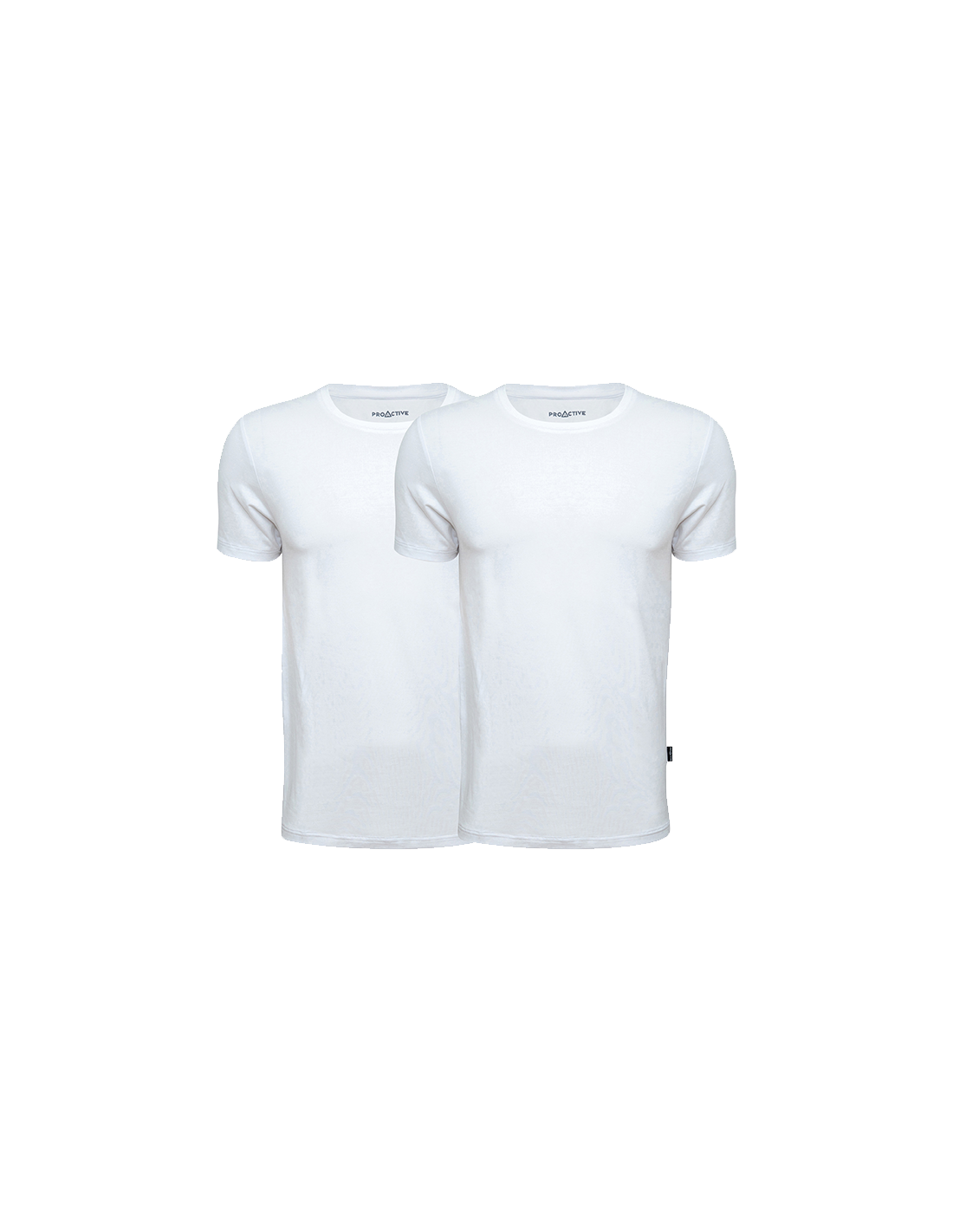 Forkæl dig selv med ultimativ komfort og bæredygtighed med denne 2-pak hvide bambus t-shirts fra ProActive by JBS. Designet med fokus på pasform og luksuriøs komfort, er disse t-shirts fremstillet af en blanding af 65% bambusviskose, 30% bomuld og 5% elastan.