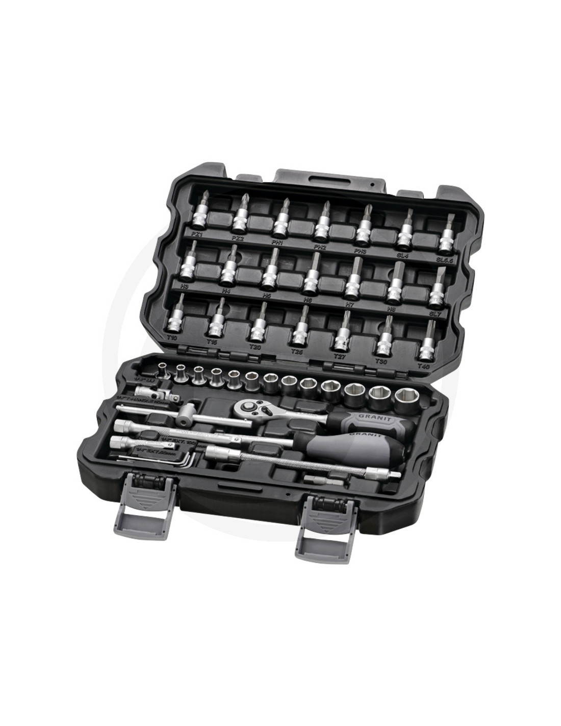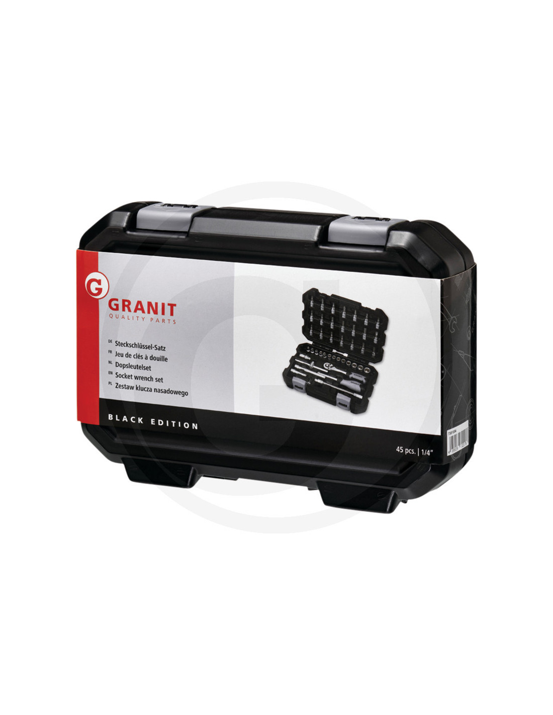 Opdag GRANIT BLACK EDITION 1/4" Topnøgle-sæt, et sæt af høj kvalitet fra Tyskland, der matcher standarden hos alle kendte værktøjsmærker. Dette sæt er designet til at imødekomme enhver opgave med præcision og pålidelighed.