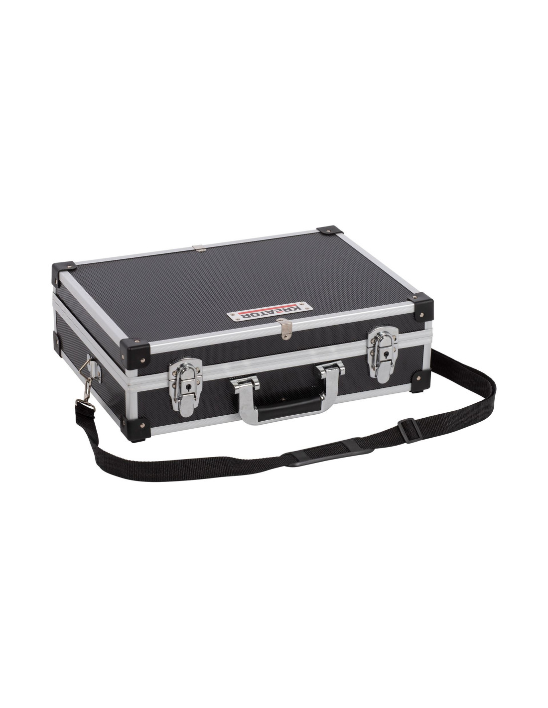 Den robuste, men lette taske med indvendige polstring 420x300x125 mm. Du kan bekvemt bære den med glat metalhåndtag og skulderrem. Endelig kan KRT640101B også låses med to nøglelås og du får to nøgler. Denne sorte taske er også tilgængelig i sølv.
