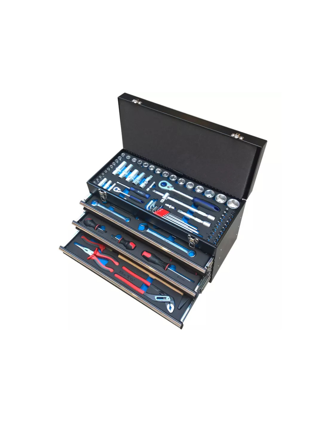 BATO Værktøjssæt med 99 dele er den perfekte løsning for både professionelle håndværkere og ivrige gør-det-selv-entusiaster. Dette omfattende sæt indeholder alt, hvad du behøver for at tackle enhver opgave, der måtte komme din vej.Sættet leveres i en robust metalkuffert, der har tre praktiske skuffer, som holder alle værktøjer organiseret og let tilgængelige. Kuffertens dimensioner på 22 cm i bredde, 55 cm i længde og 30 cm i højde gør den nem at transportere og opbevare.