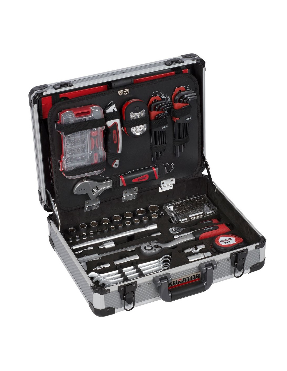 Dette omfattende værktøjssæt i en praktisk aluminiumskuffert giver dig alt, hvad du behøver til en bred vifte af opgaver. Uanset om du er en professionel håndværker eller gør-det-selv-entusiast, er dette sæt skræddersyet til at opfylde dine krav. Her er en oversigt over, hvad du finder i dette alsidige sæt: