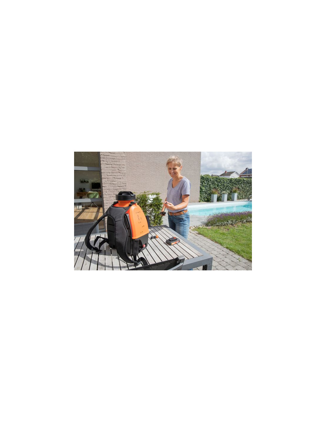 Med denne Dual Power-rygsæk-tryksprøjte bliver sprøjtning og desinfektion af store overflader en leg. Den 20V-enhed leverer en imponerende maksimal strømningshastighed på 1,5 liter pr. minut og opretholder et konstant tryk på 6 bar. Den rummelige 16 liters tank kan bæres bekvemt som en rygsæk takket være de bløde skulderstropper, der sikrer den nødvendige komfort. Dette gør det nemt at bevæge sig frit, uden generende forlængerledninger.